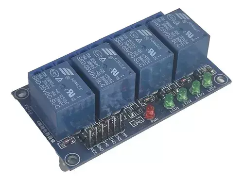 Módulo formado por 4 relés (4 canales independientes) especial para prototipado rápido con Arduino u otros controladores. Muy fácil de conectar y programar, sin necesidad de librerías específicas de control, sólo necesita el voltaje de salida de un pin (TTL- 5 V) de una placa Arduino o similar para controlar su funcionamiento. Con LED indicador de estado.